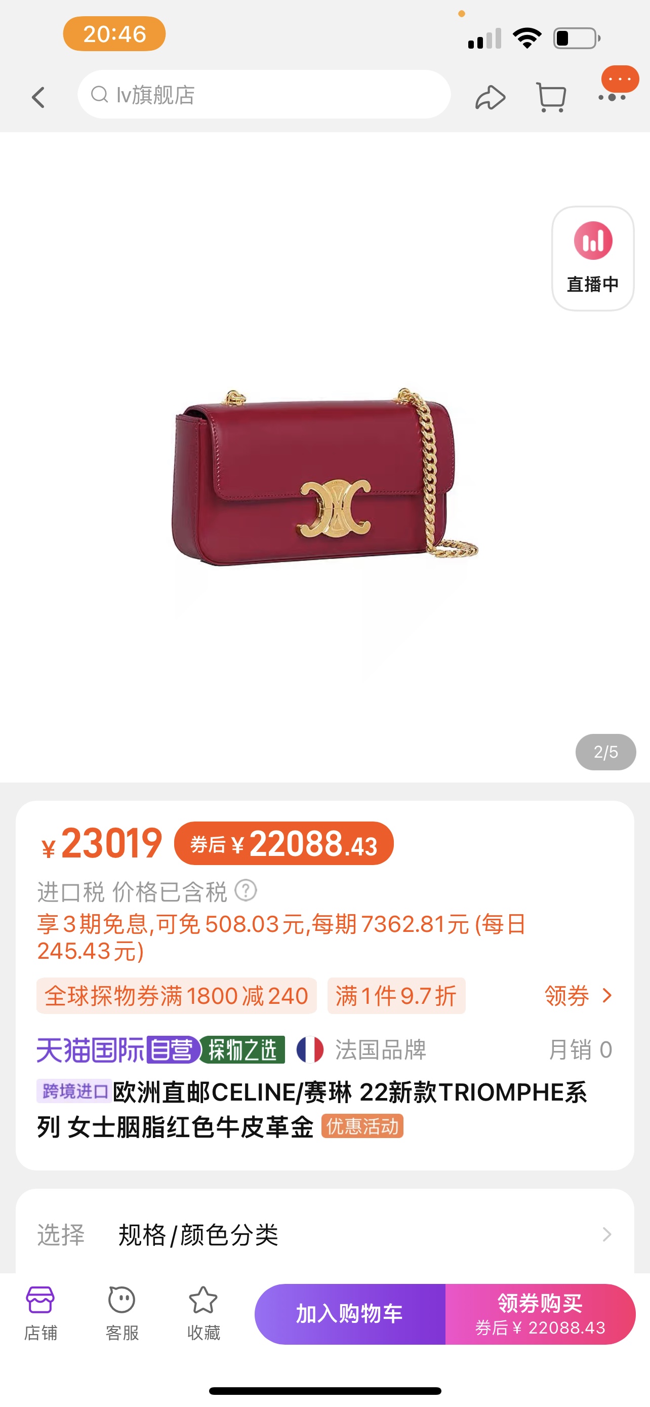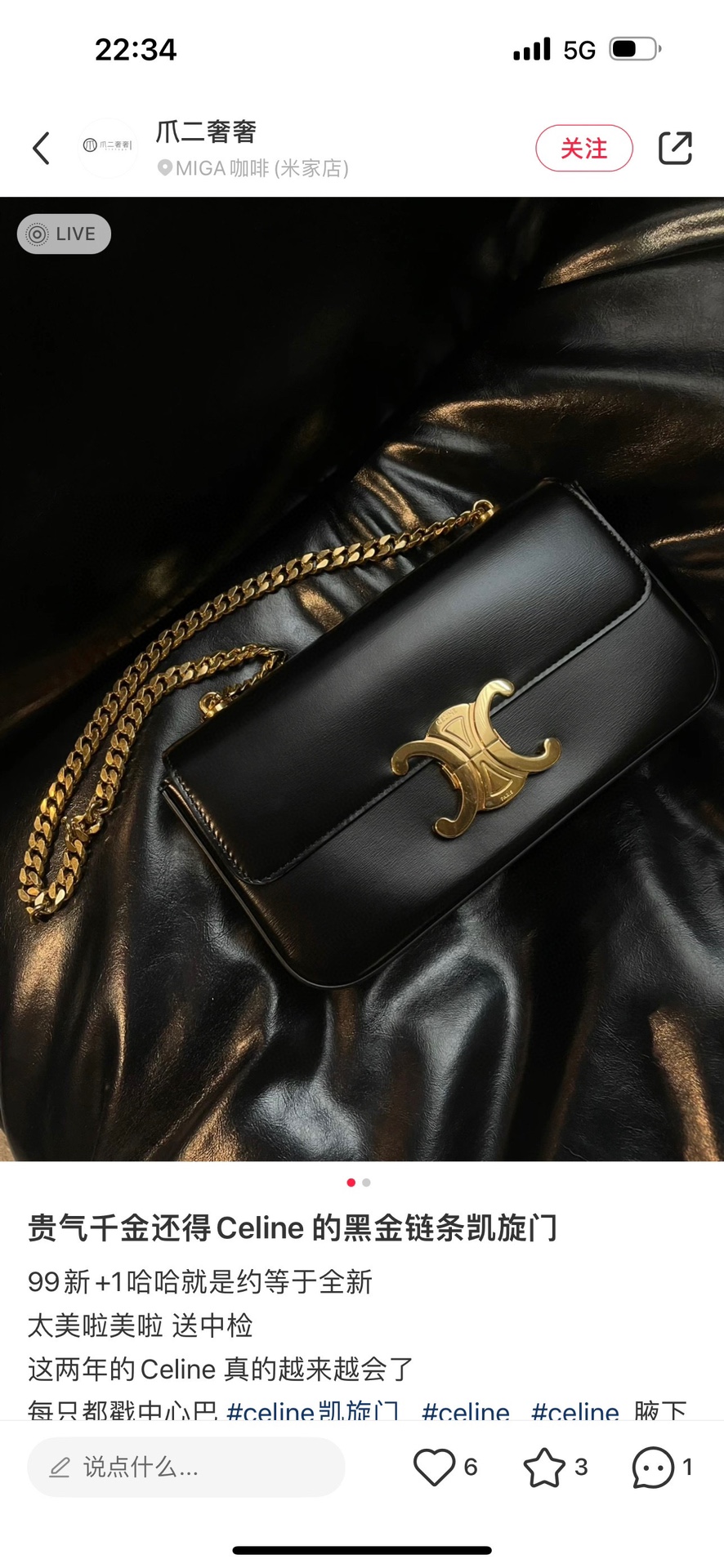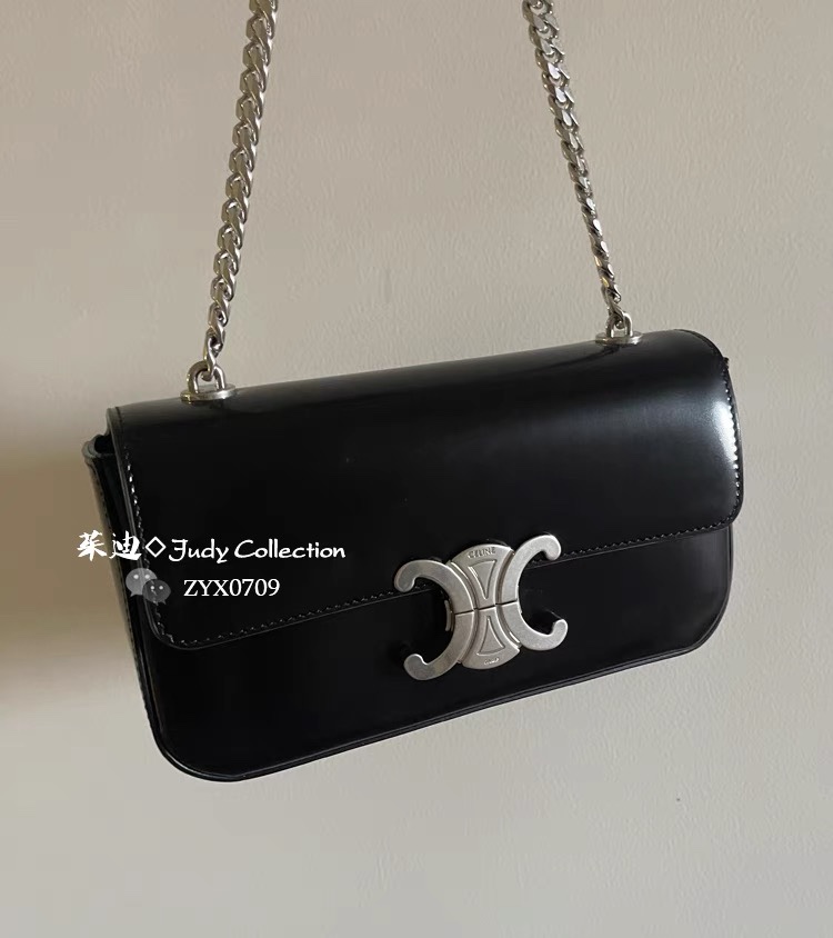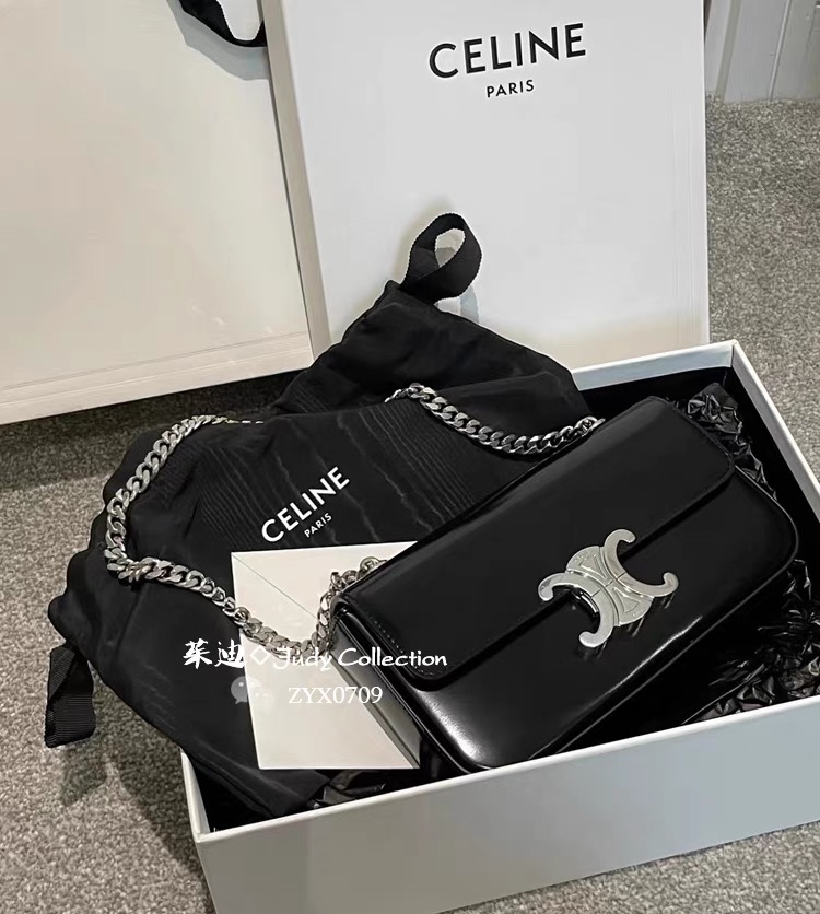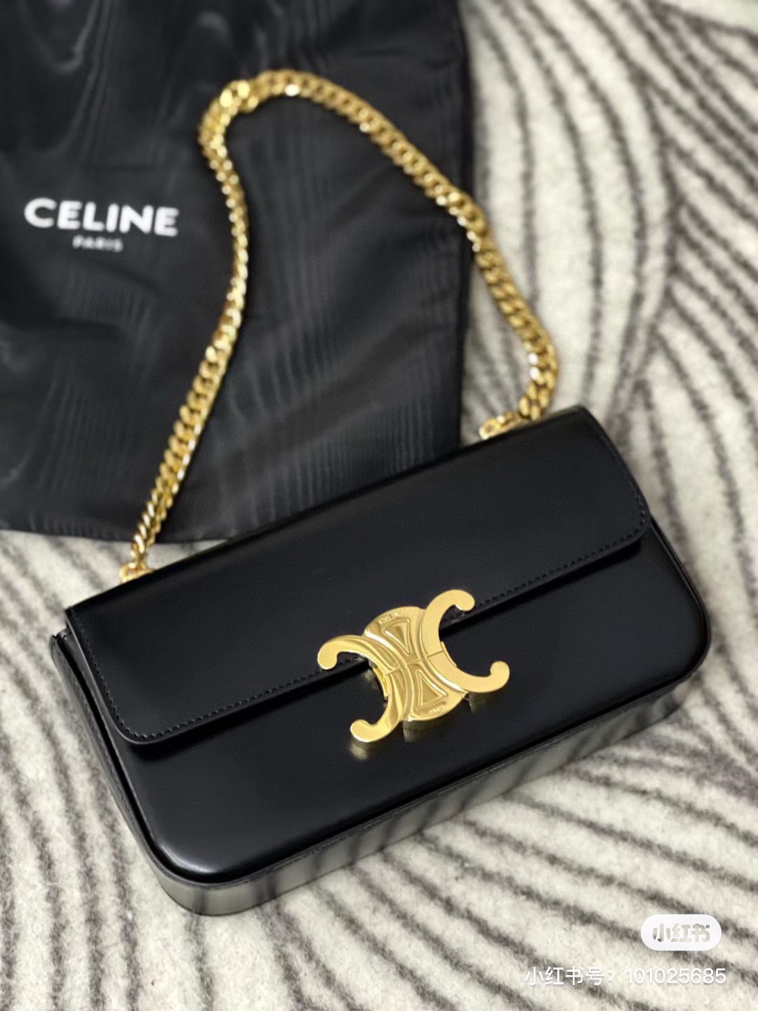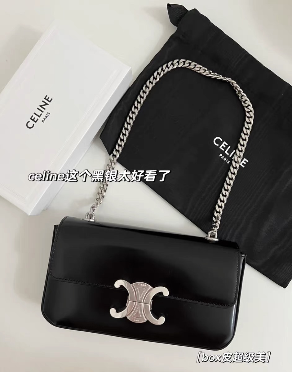 Ce1i*e Triomphe chain shoulder bag in satined calfskin width 20.5 cm, height 11.5 cm, depth 4 cm. Master Quality