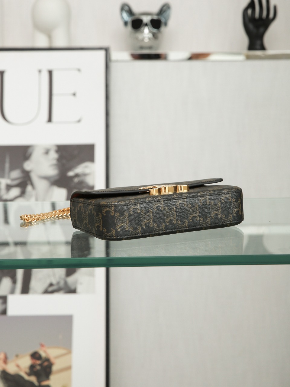 Ce1i*e CHAIN SHOULDER BAG IN TRIOMPHE CANVAS CANVAS AND LAMBSKIN 197412DQW.04LU (33*13*5cm) Master Quality