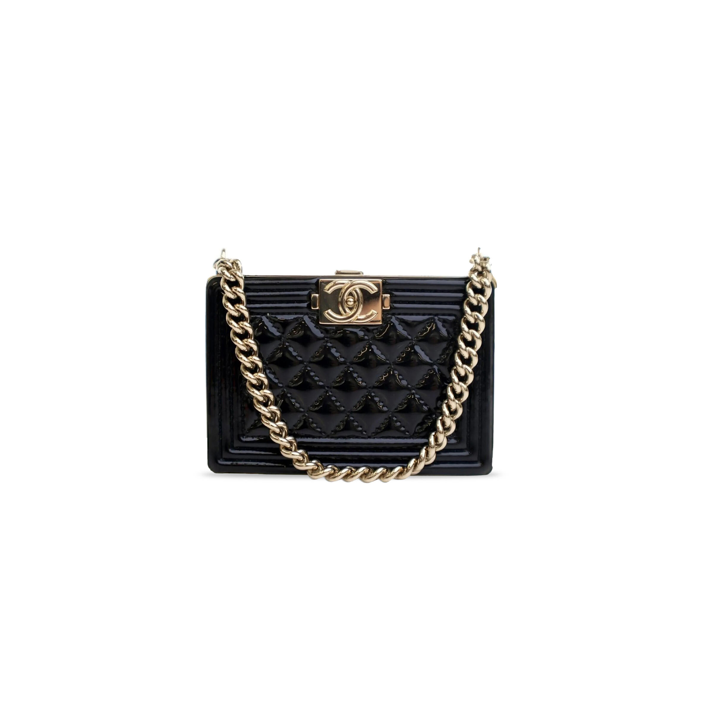 Ch**el PATENT BOY CLUTCH WITH CHAIN HANDBAG AP2870 B08500 94305 (11*7.5*2.5cm) Master Quality