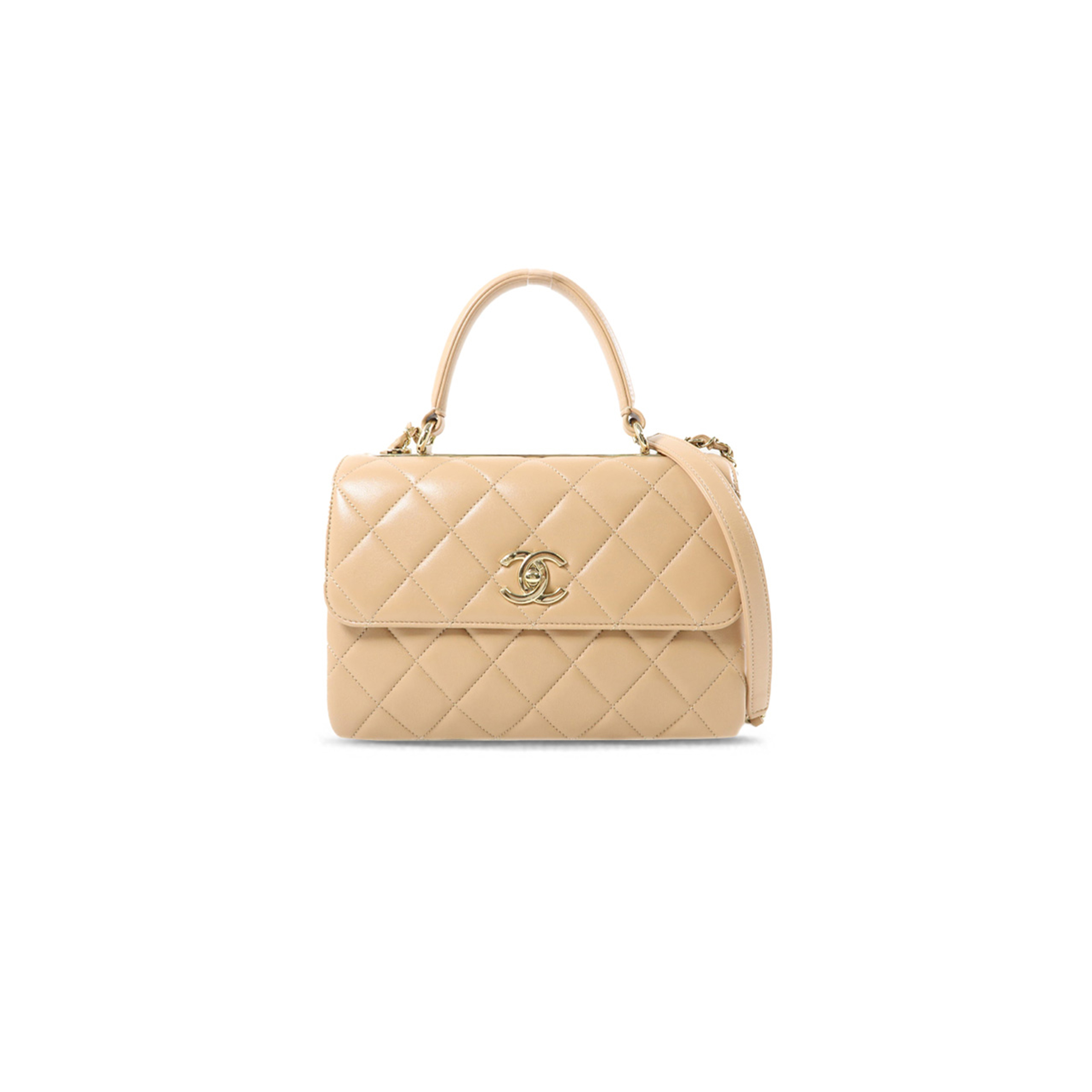 Ch**el COWHIDE LEATHER CHAIN SHOULDER GOLD BUCKLE HANDLE SHOULDER BAG BEIGE (25*17*9cm) Master Quality