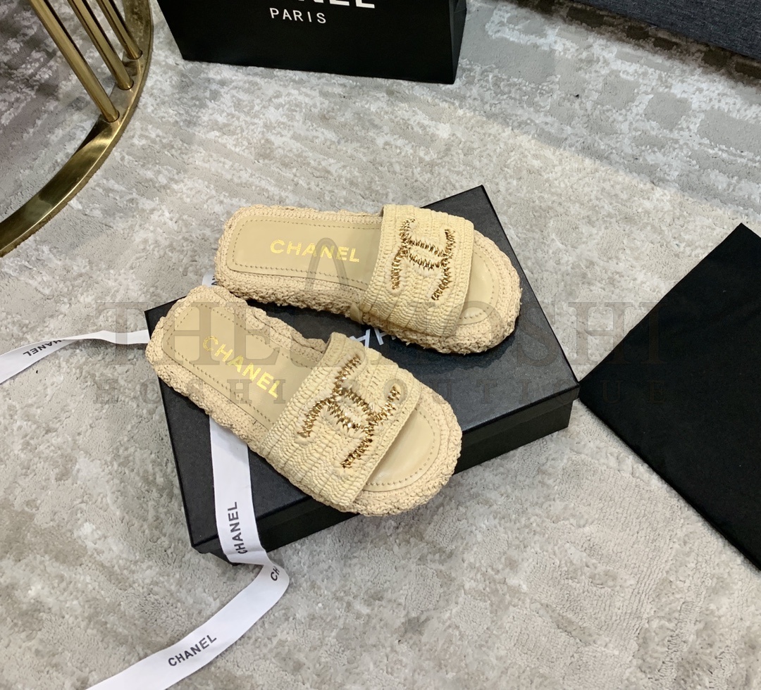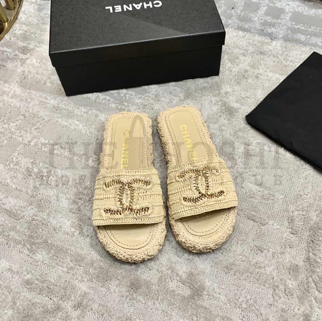 Ch**el 25P CALFSKIN OPEN TOE FLAT SLIPPERS G46119 Master Quality