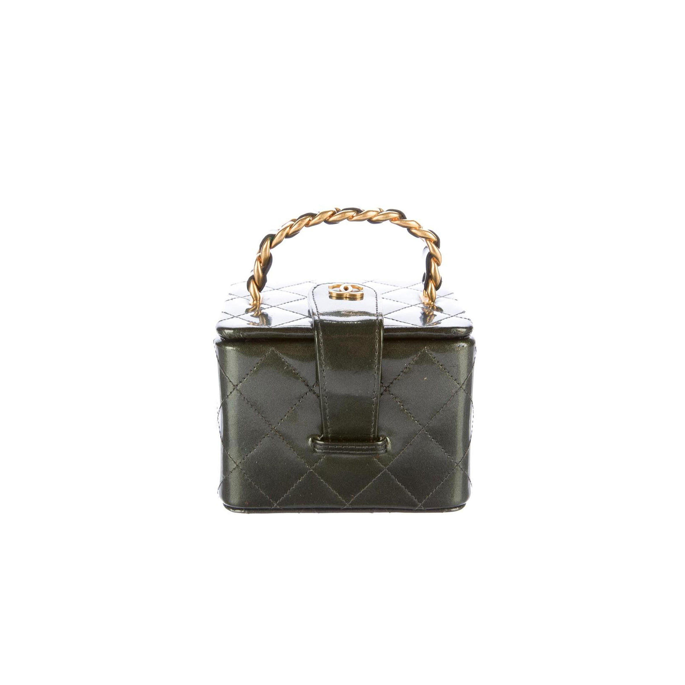 Ch**el VANITY CASE MICRO MINI 90S VINTAGE IRIDESCENT RARE GREEN PATENT CLUTCH (11*10*8cm) Master Quality