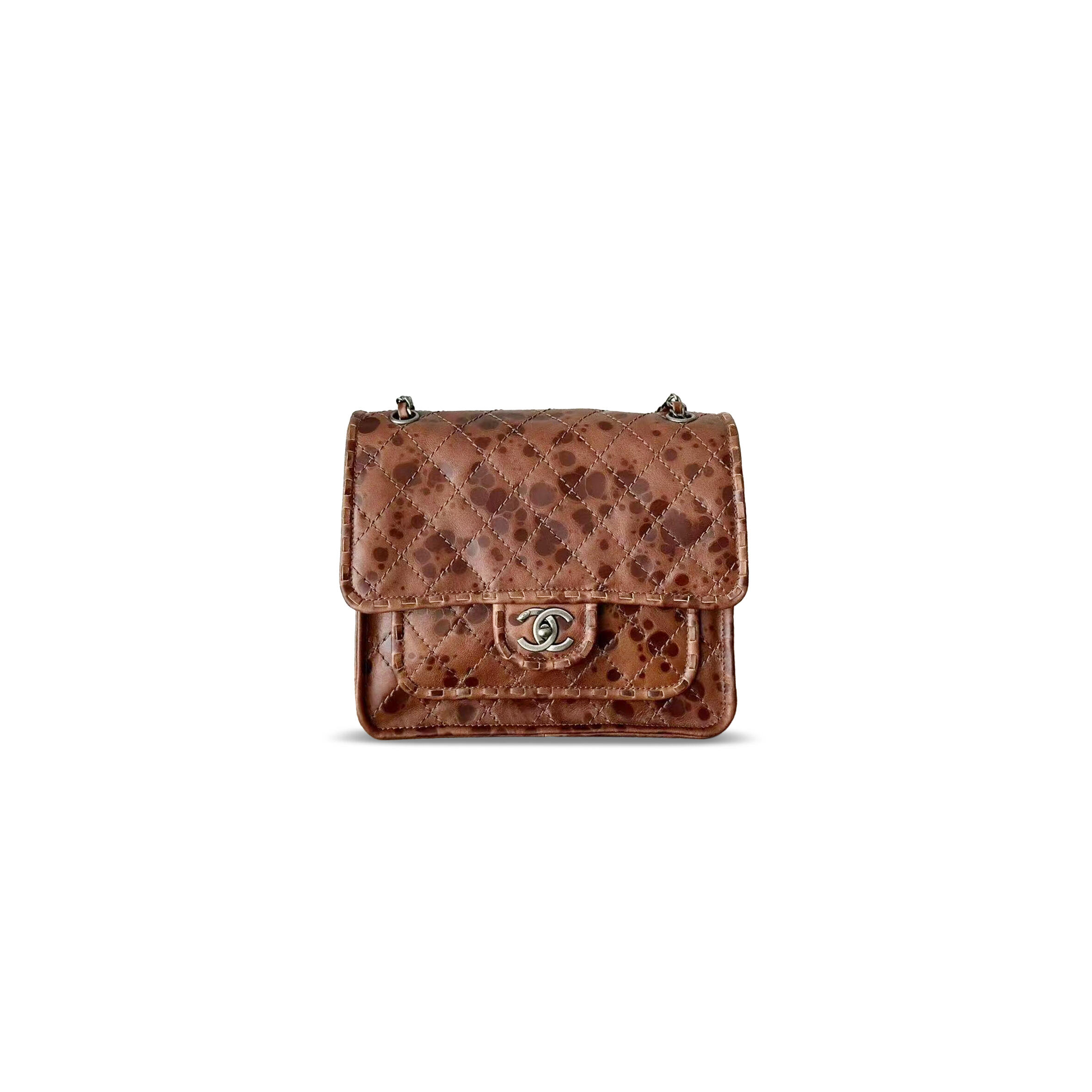 Ch**el OIL WAX LEATHER CHAINS SHOULDER FLAP BAG BROWN 163542 (26*23*11cm) Master Quality