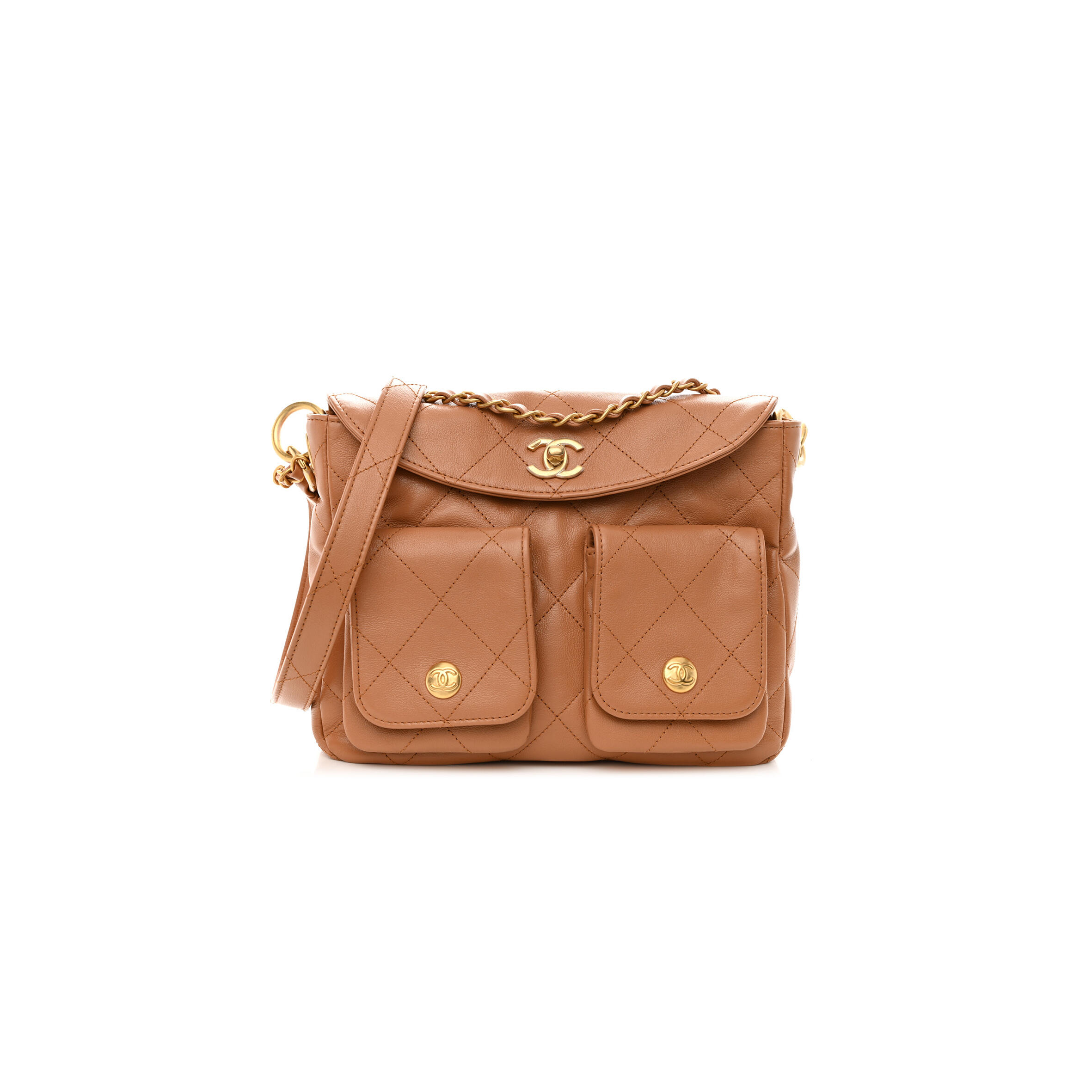 Ch**el SHINY CALFSKIN QUILTED S*pPLE TWINS SMAL HOBO BAG BROWN (24.5*19*5cm) Master Quality