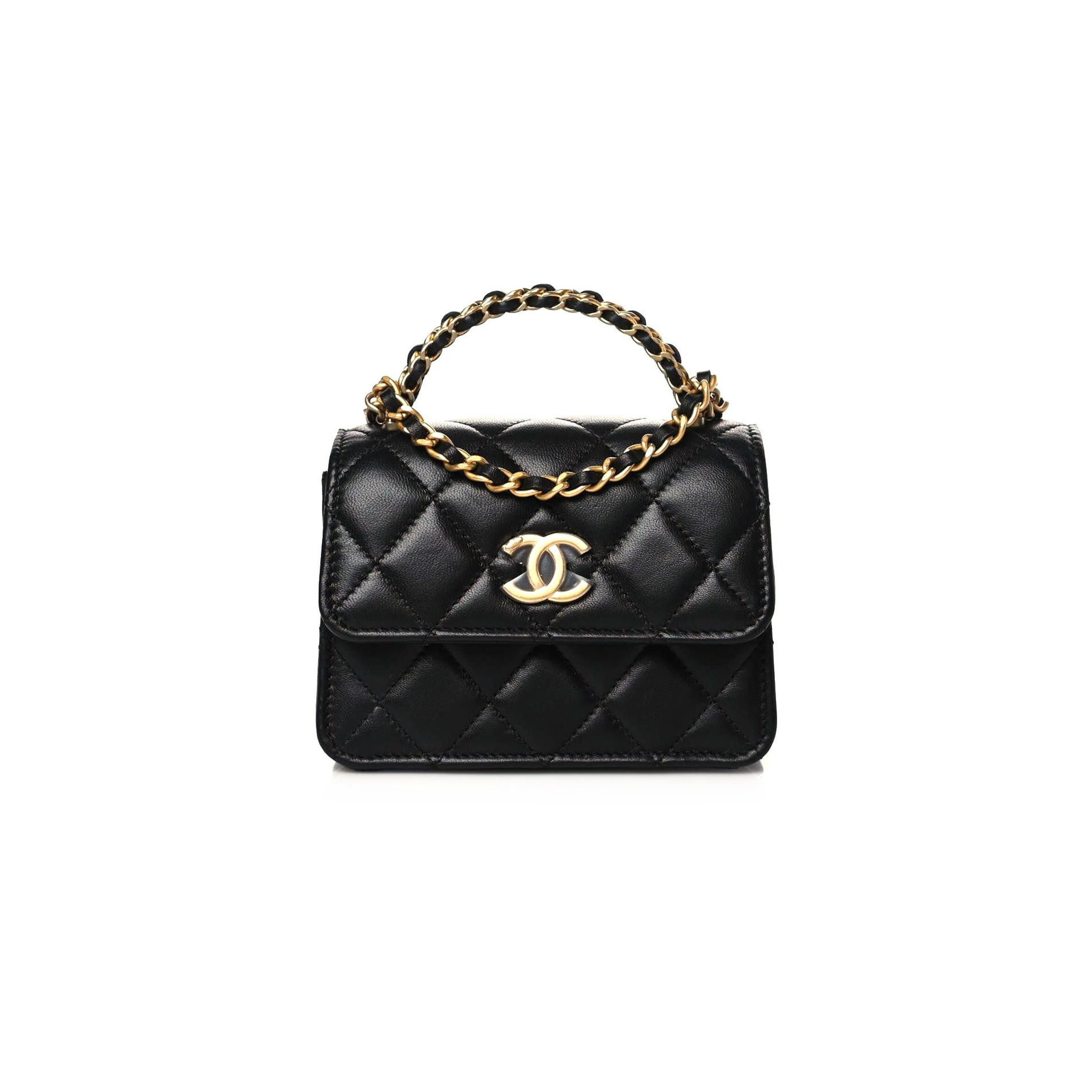 Ch**el LAMBSKIN QUILTED CHAIN TOP HANDLE CLUTCH WITH CHAIN 1126019 (13*10*6cm) Master Quality