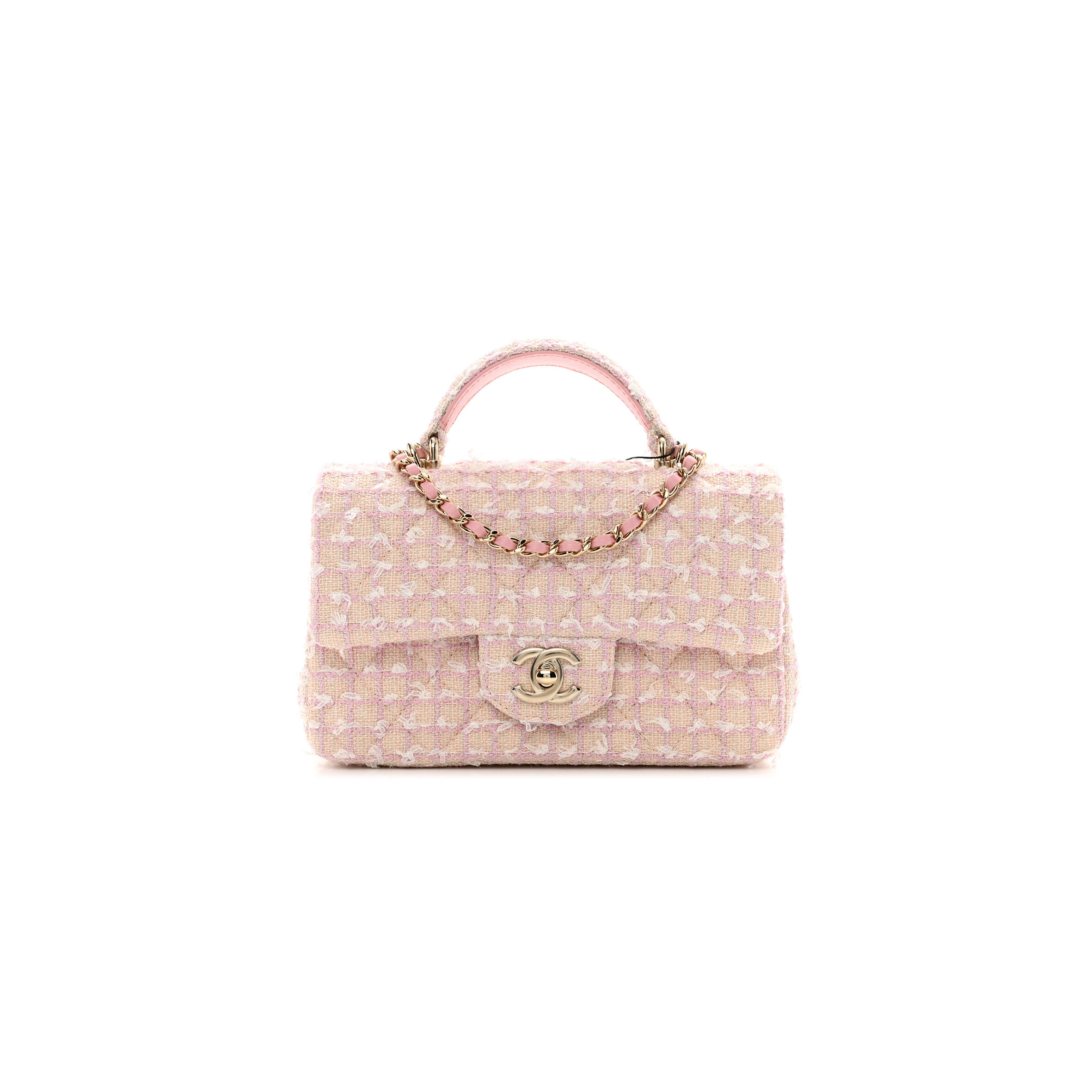 Ch**el TWEED QUILTED MINI TOP HANDLE RECTANGULAR FLAP LIGHT PINK 1386916 (20*12*6cm) Master Quality