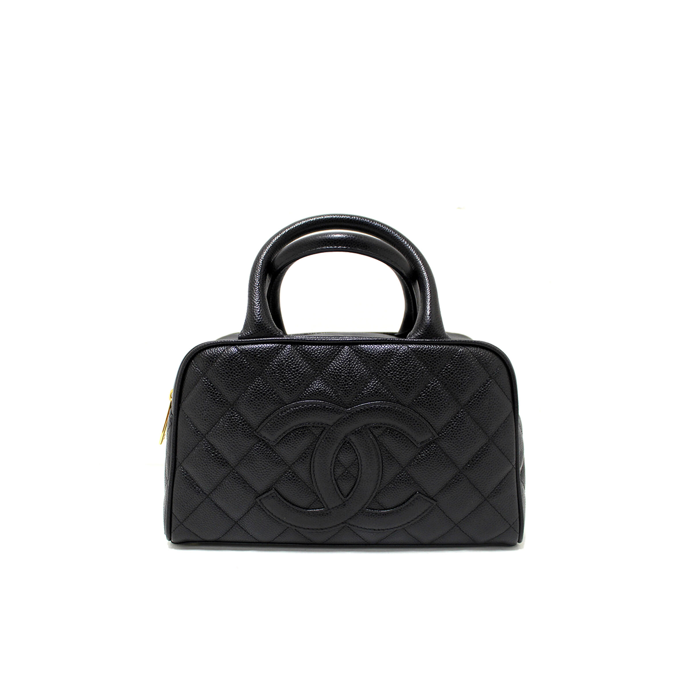 Ch**el BLACK CAVIAR SMALL BOWLER HANDBAG 71303 (25*15*7cm) Master Quality
