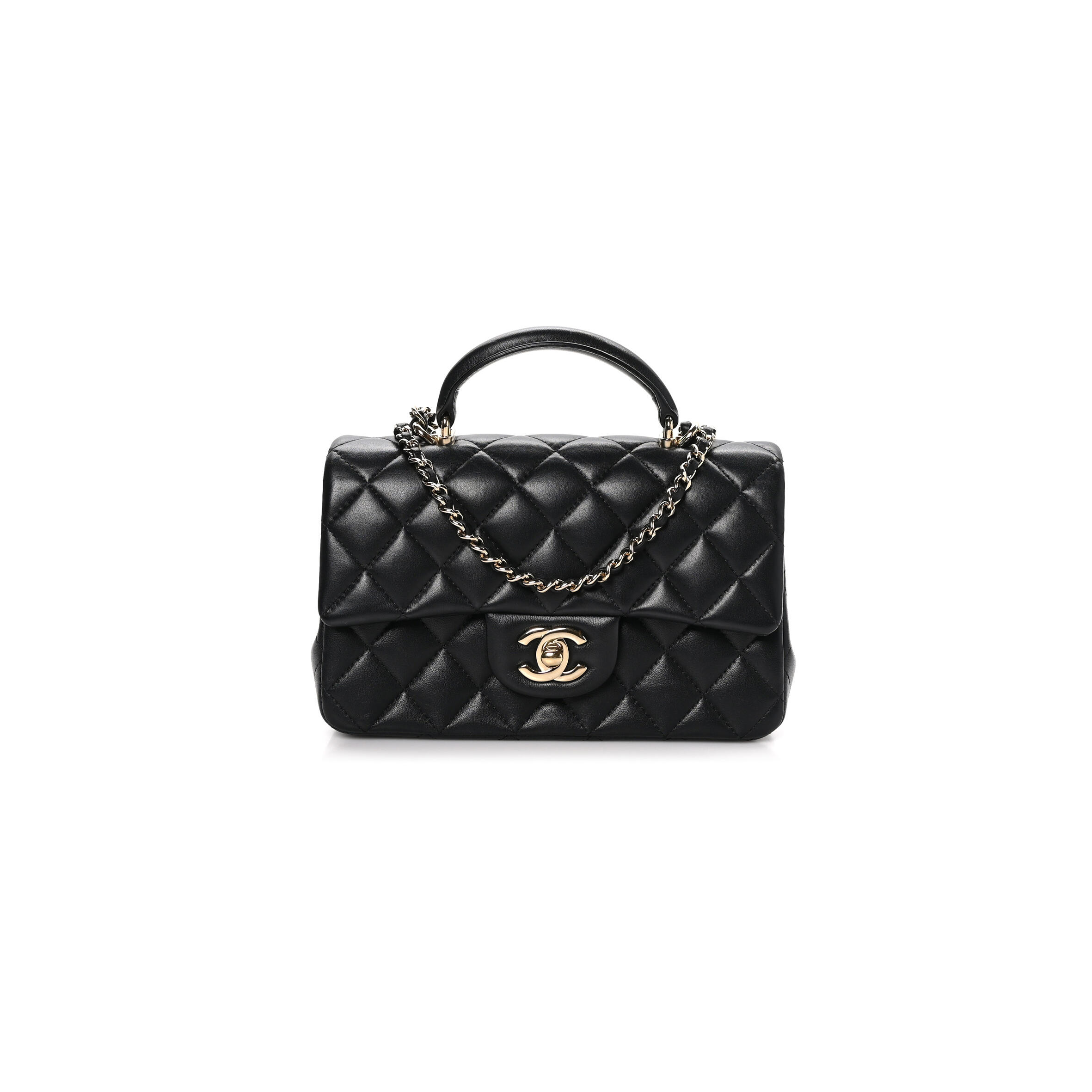 Ch**el LAMBSKIN QUILTED MINI TOP HANDLE RECTANGULAR FLAP BLACK (20*12*6cm) Master Quality