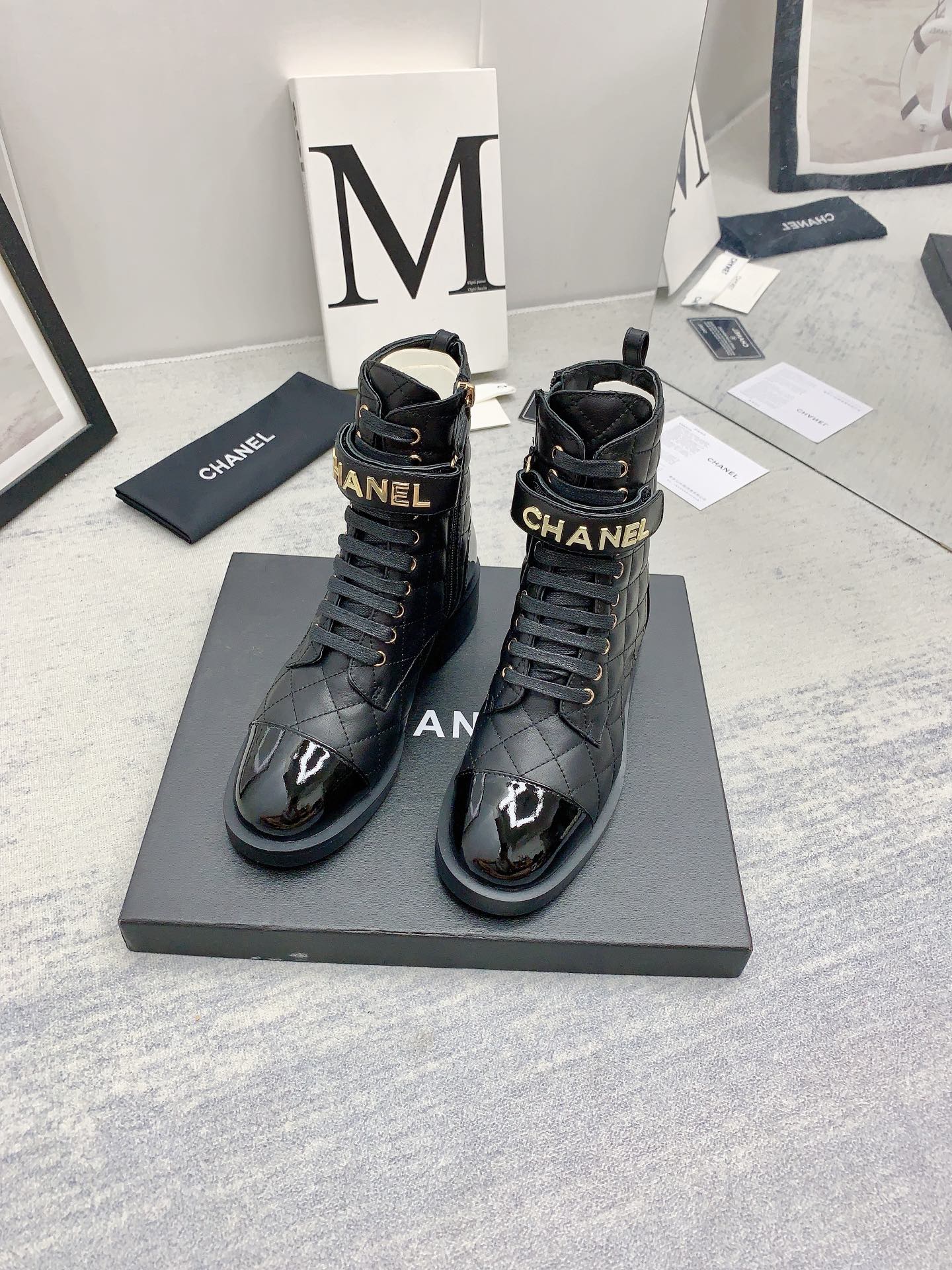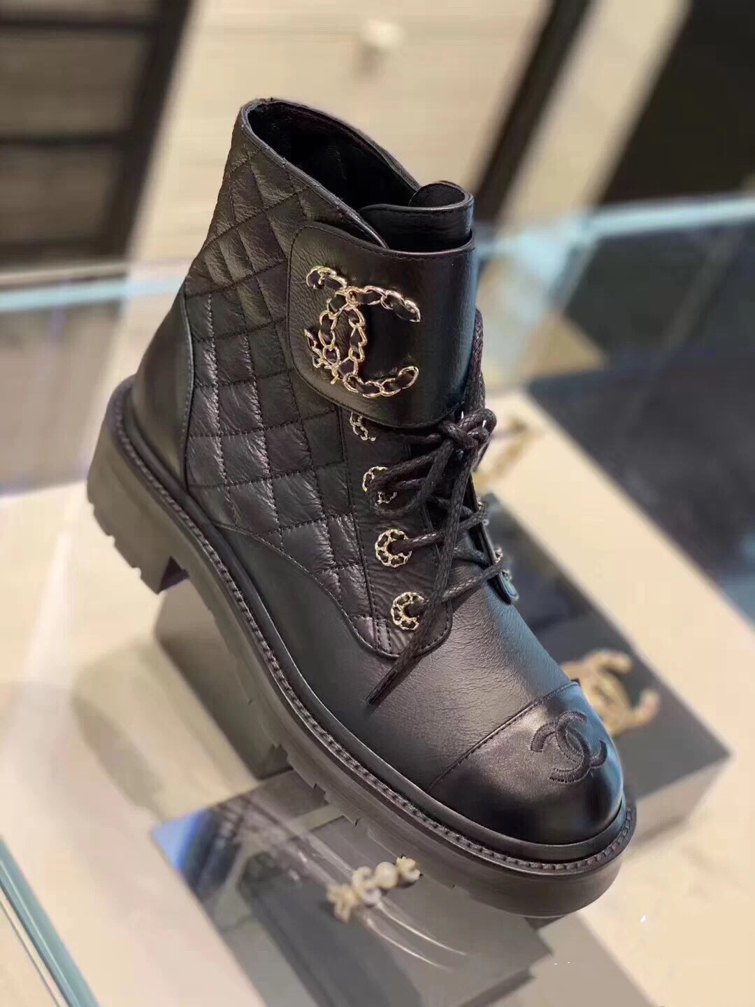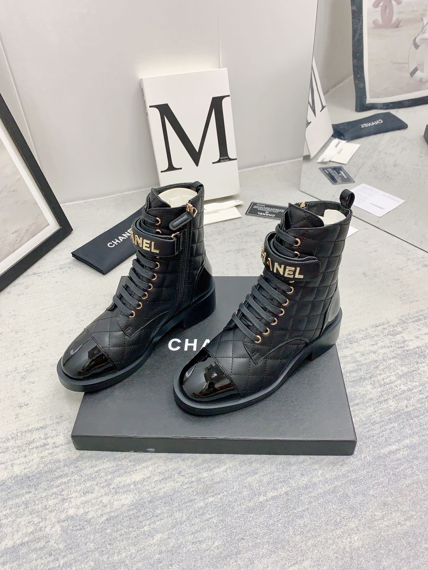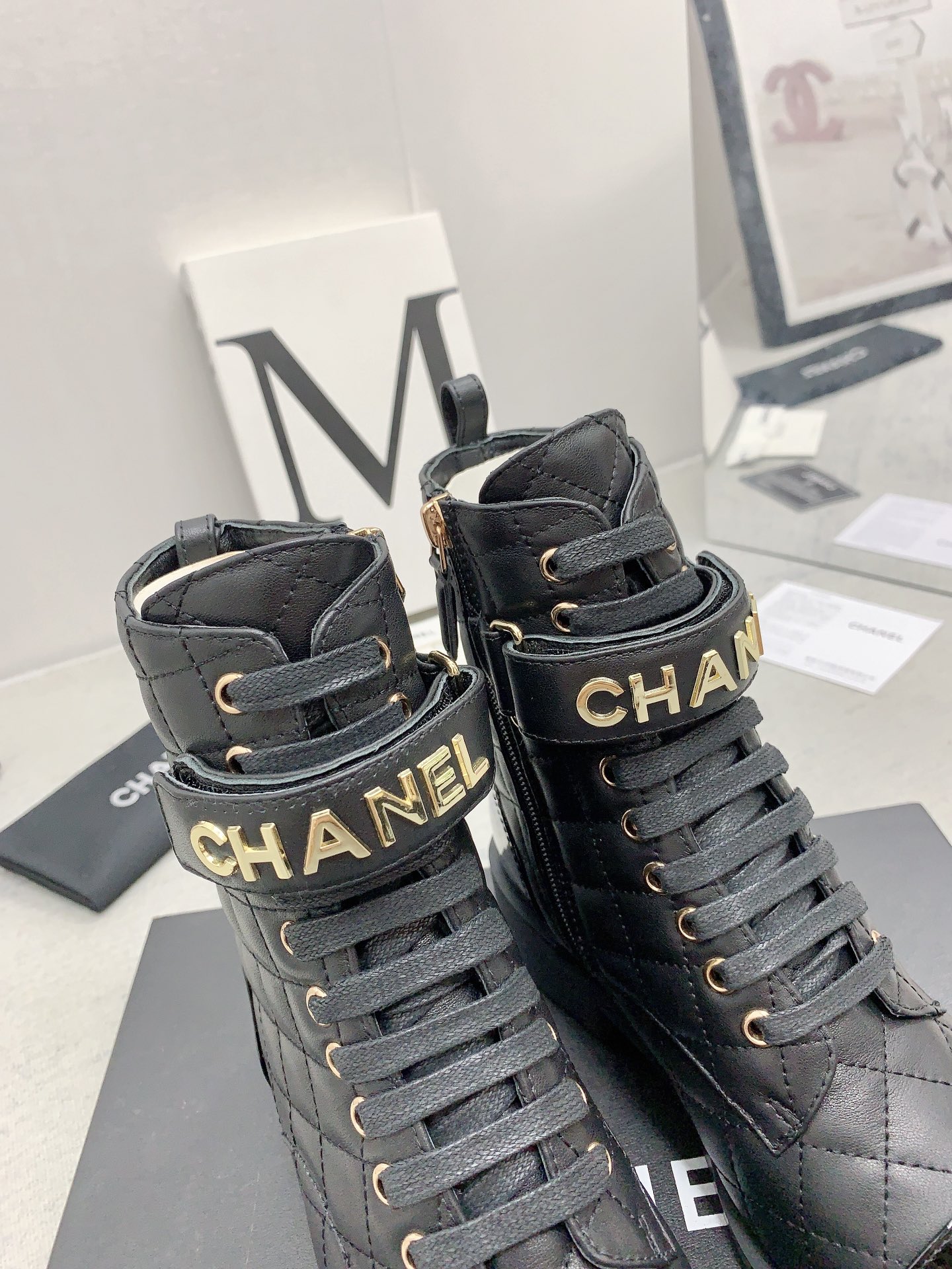 Ch**el QUILTED ANKLE BOOTS 421103 Master Quality