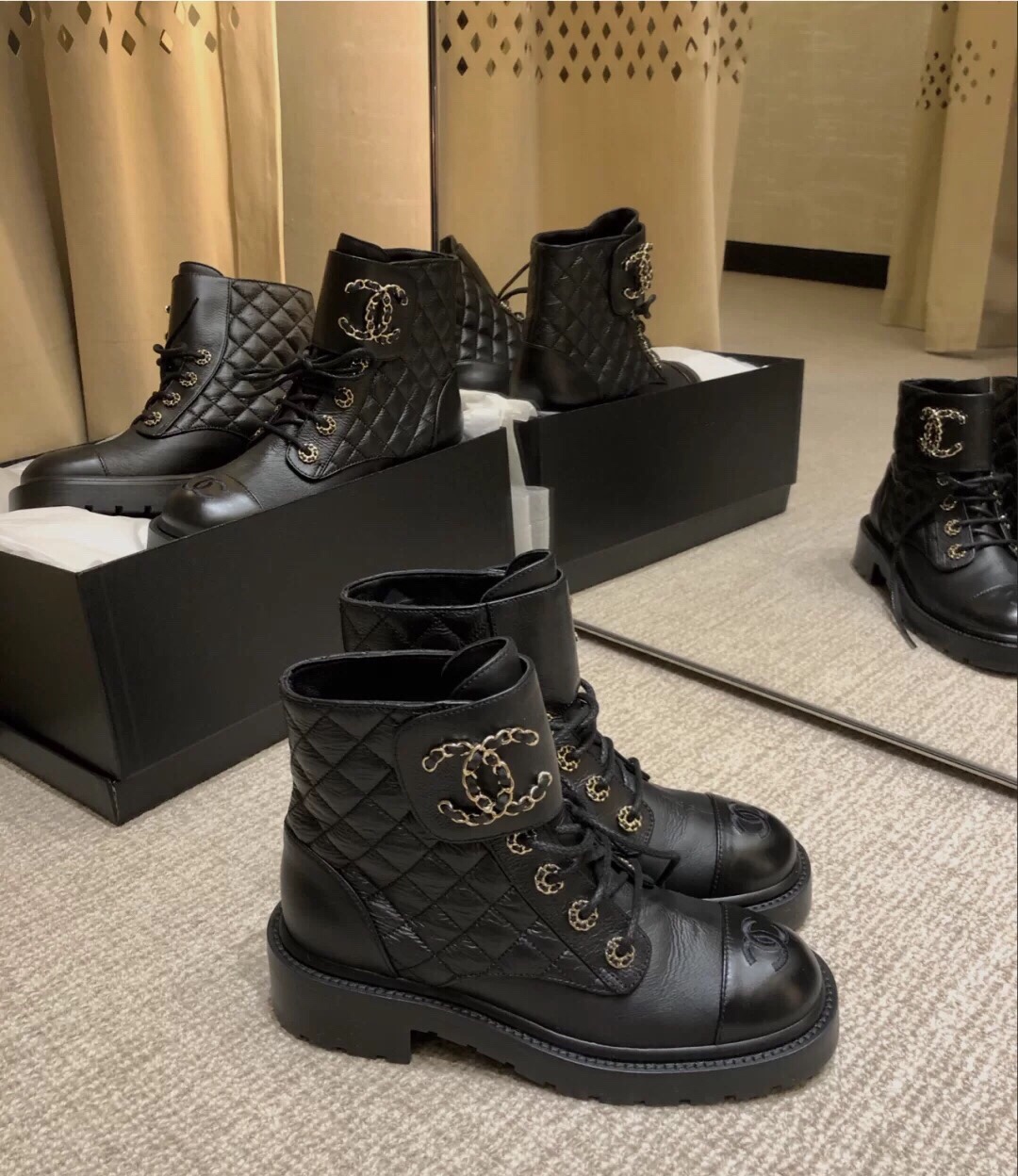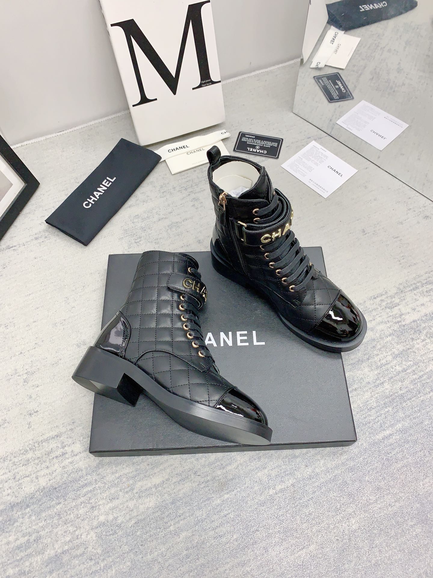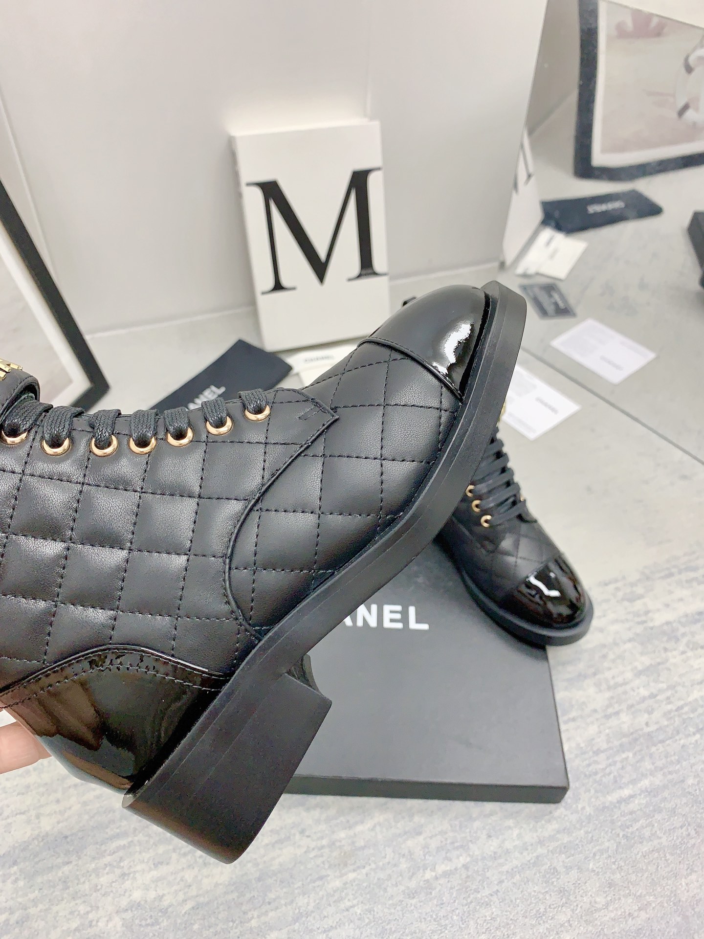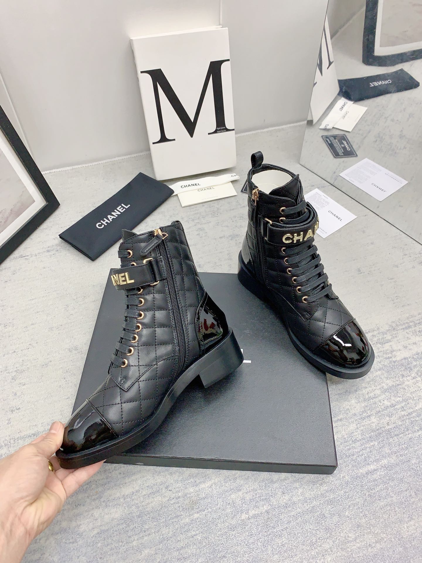 Ch**el QUILTED ANKLE BOOTS 421103 Master Quality