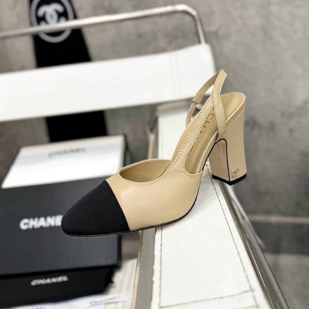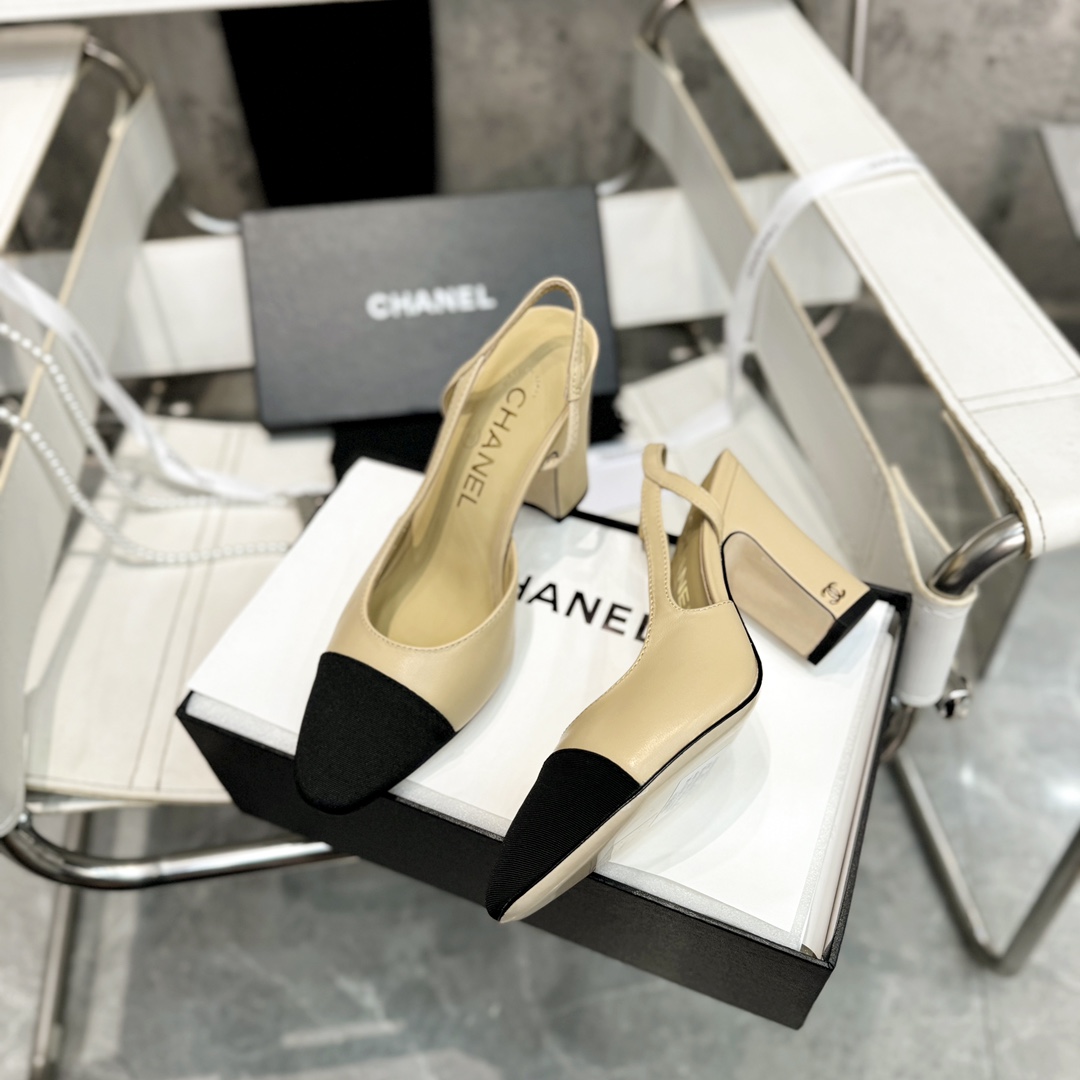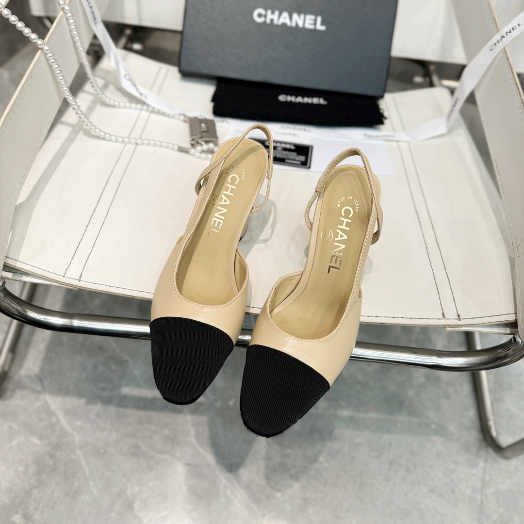 Ch**el 25S Lambskin Round - Toe Block - Heel Mule Sandals 5cm Heel Master Quality