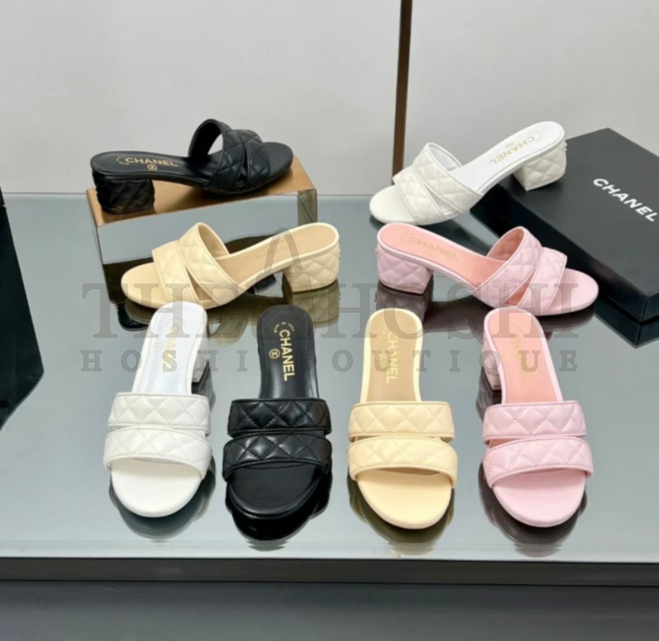 Ch**elĀ CCĀ 25Ā MIDĀ HEELĀ MULESĀ BLACKĀ SHEEPSKIN Master Quality