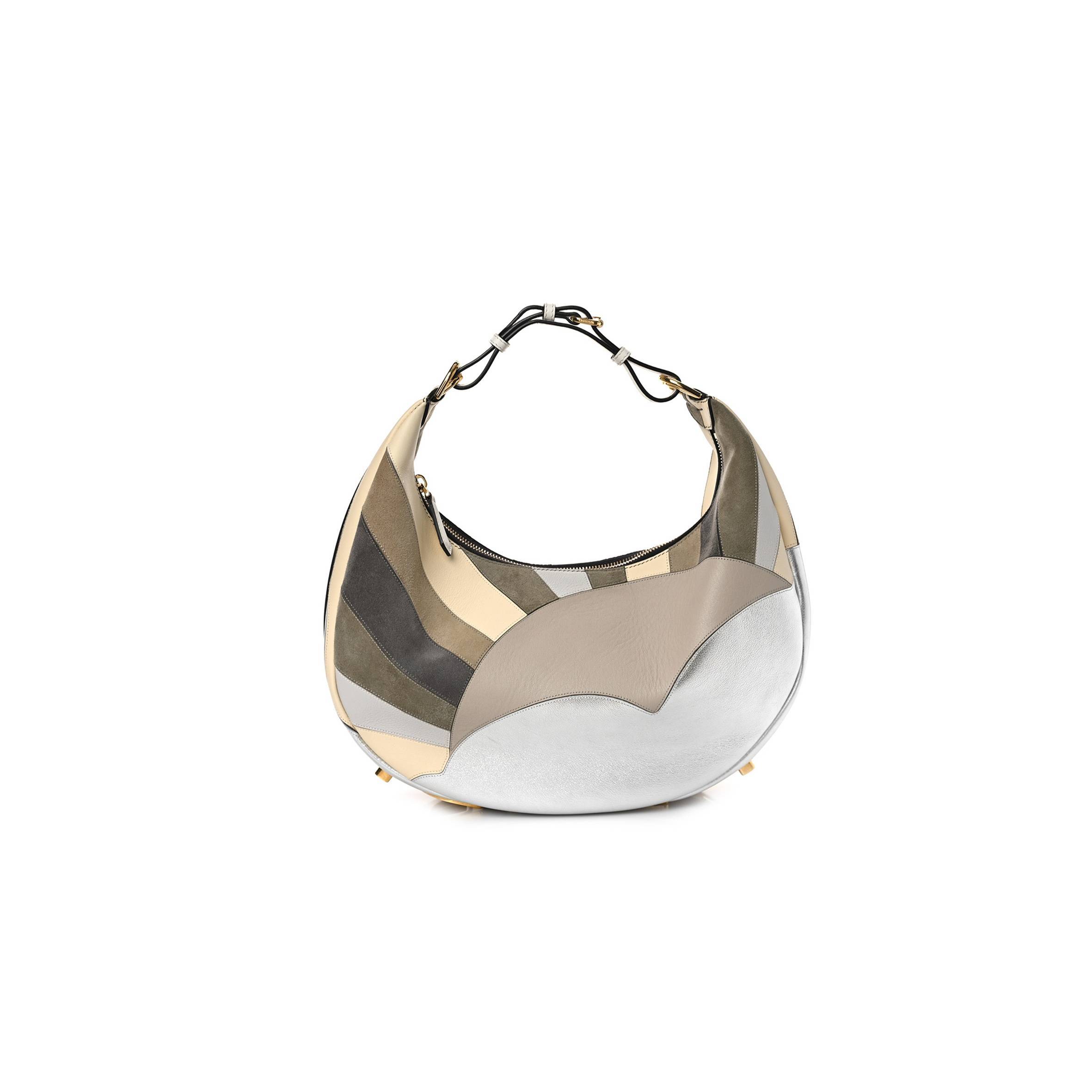 F**di VITELLO SETA GOATSKIN SUEDE SUN CLOUD INLAY MEDIUM F**diGRAPHY HOBO BAG MULTICOLOR WHITE ICE (28*20*11cm) Master Quality