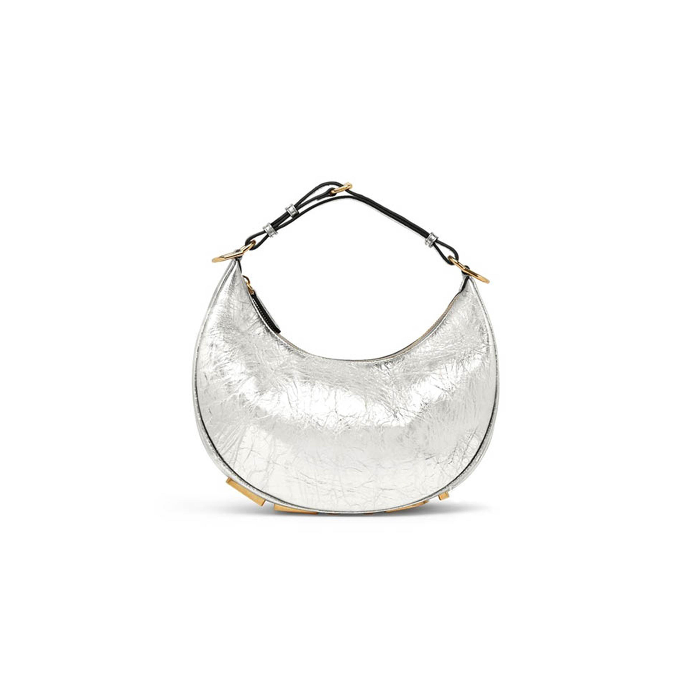 F**di F**digraphy Small Hobo Bag In Silver Metallic Leather Master Quality