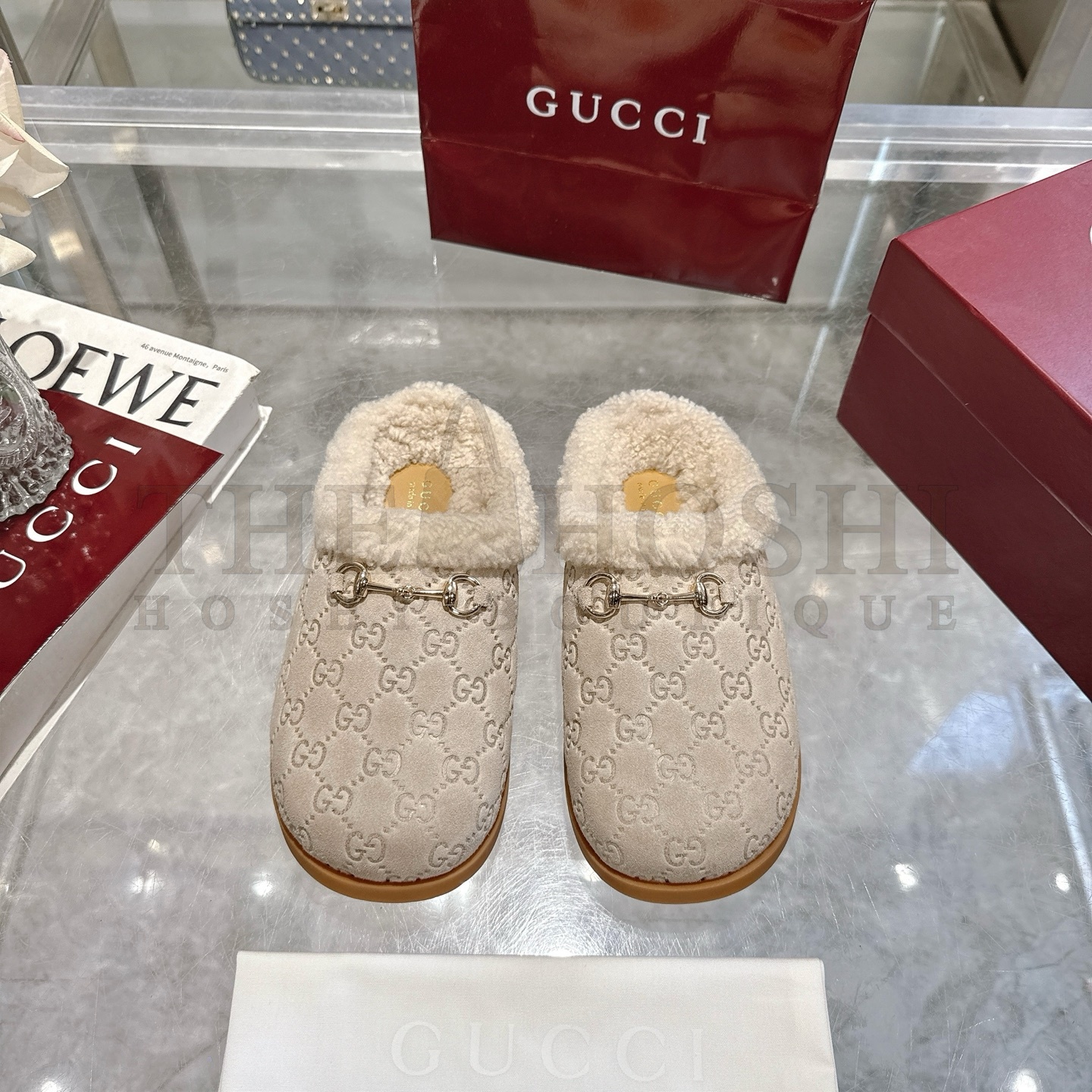 Gvc*1 Brigh Leather Horsebit-Detailed Shearling-Lined Mules Sandals Master Quality