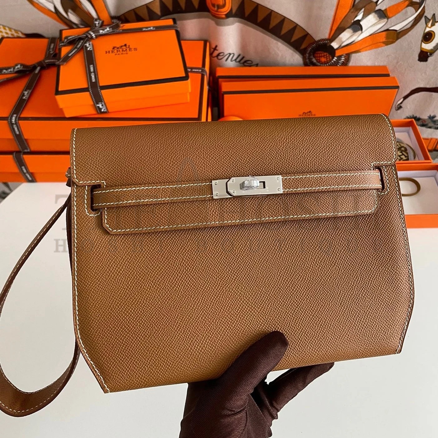 H**me5 White Kelly Pochette Epsom Handmade Bag Master Quality