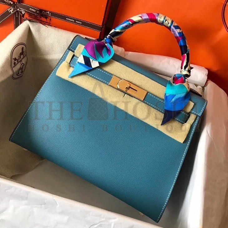 H**me5 Blue Jean Epsom Kelly 28cm Handmade Bag Master Quality