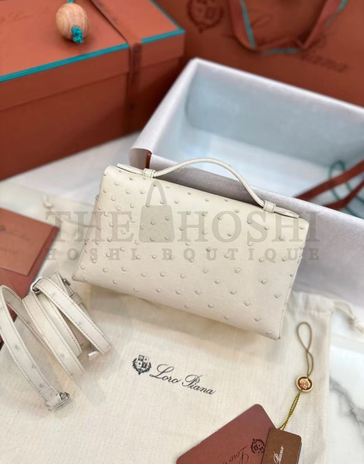 L0r0 P1ana LP L19 Extra Pocket Ostrich Leather Clutch Crossbody Bag 19x6.5x11cm Master Quality