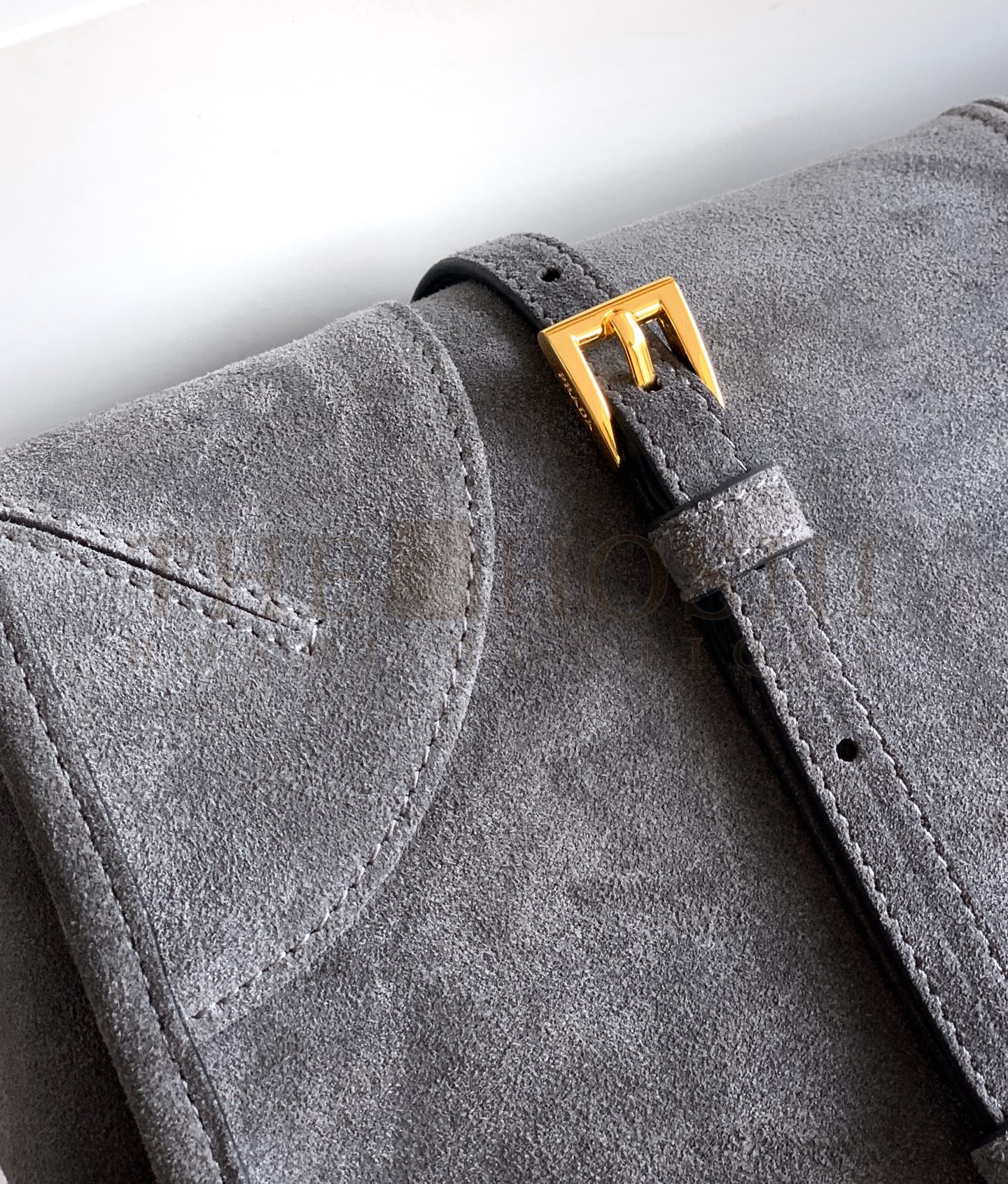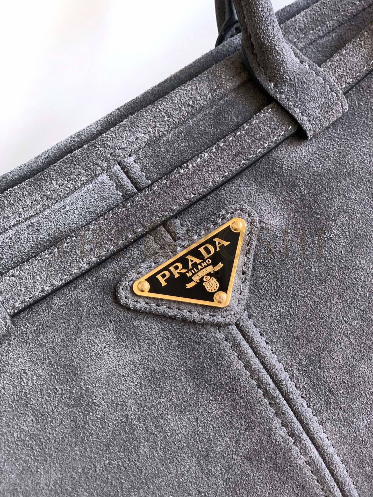 Pra*a Flap Shoulder Bag in Grey Grained Leather Master Quality