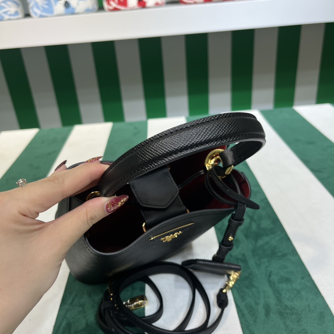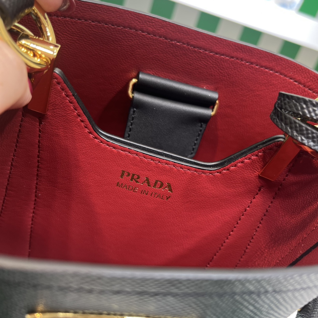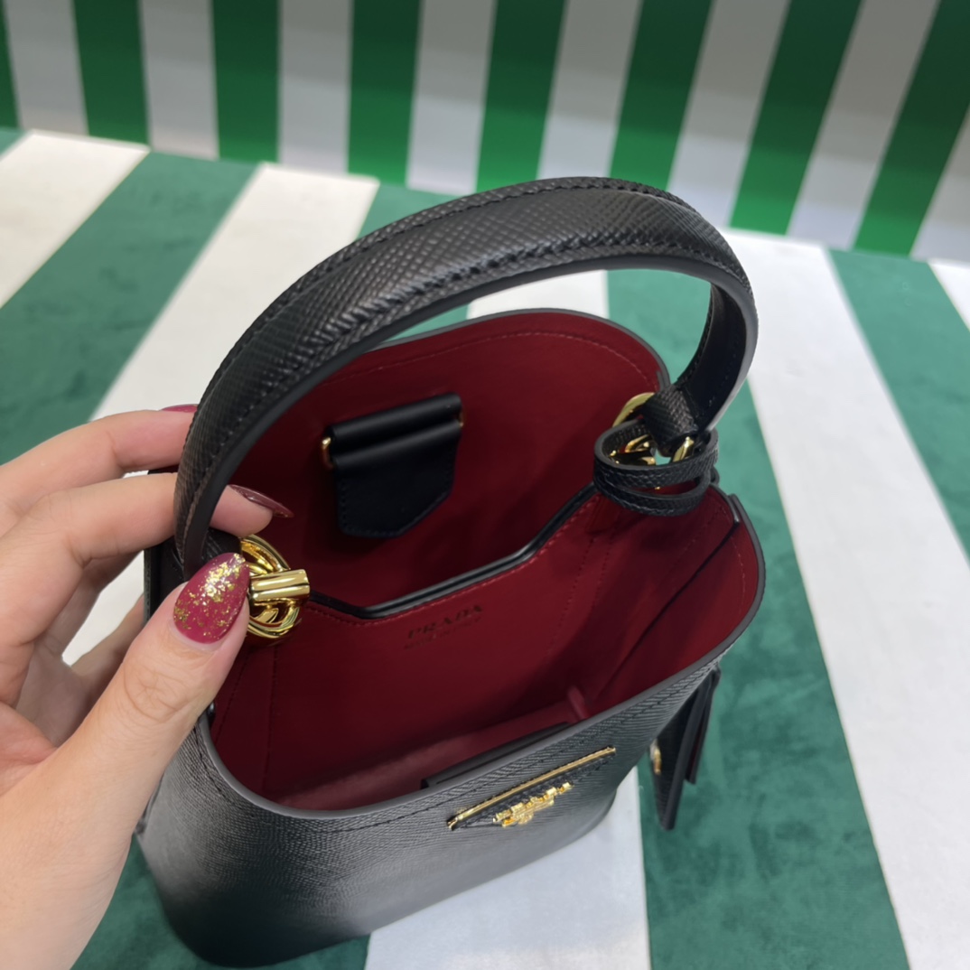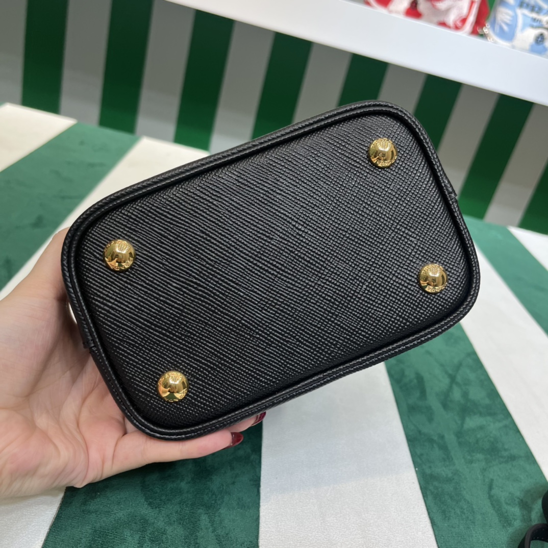Pra*a Mini 1BA349 Tote Bag – Black Deer-Grain Calfskin with Gold Hardware, 18 x 16 x 10 cm Master Quality