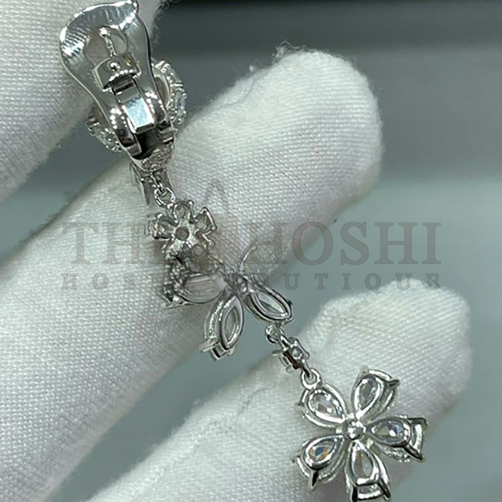 V*n Cl**f & Arpels VCA Alhambra 3-Flower Full D1am0nd Earrings Master Quality