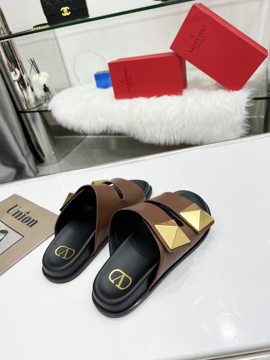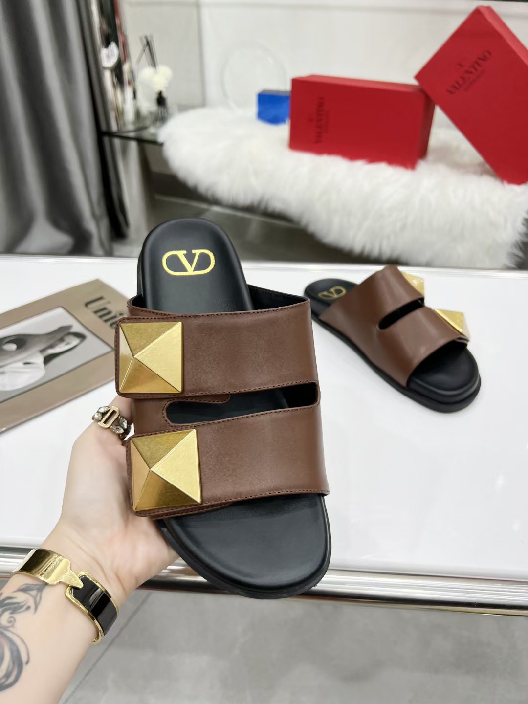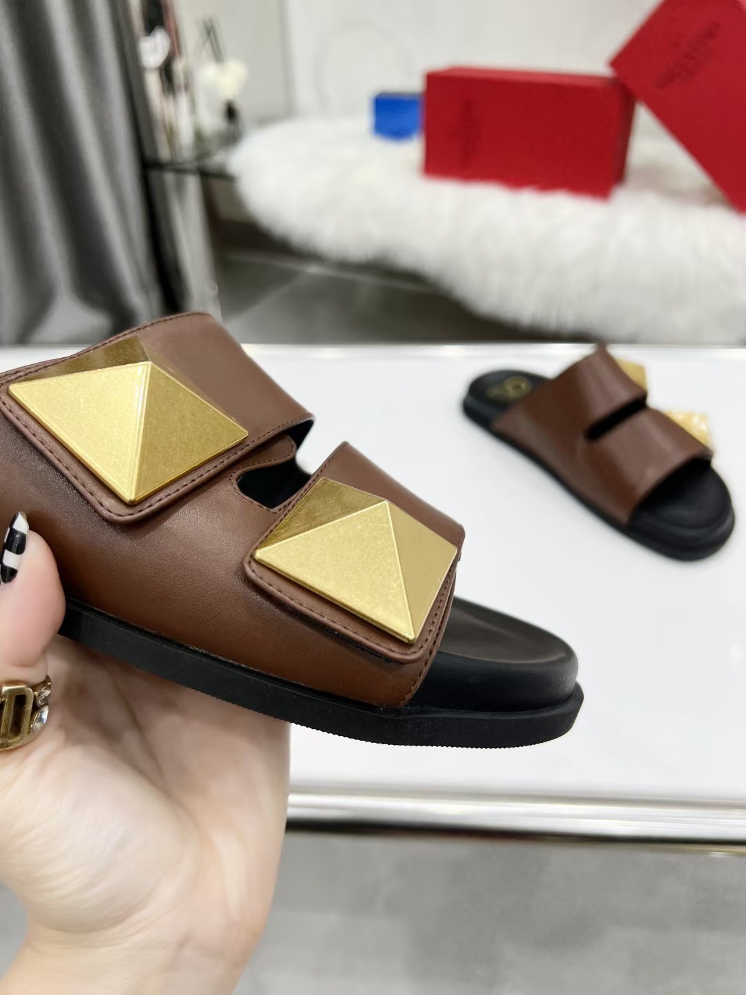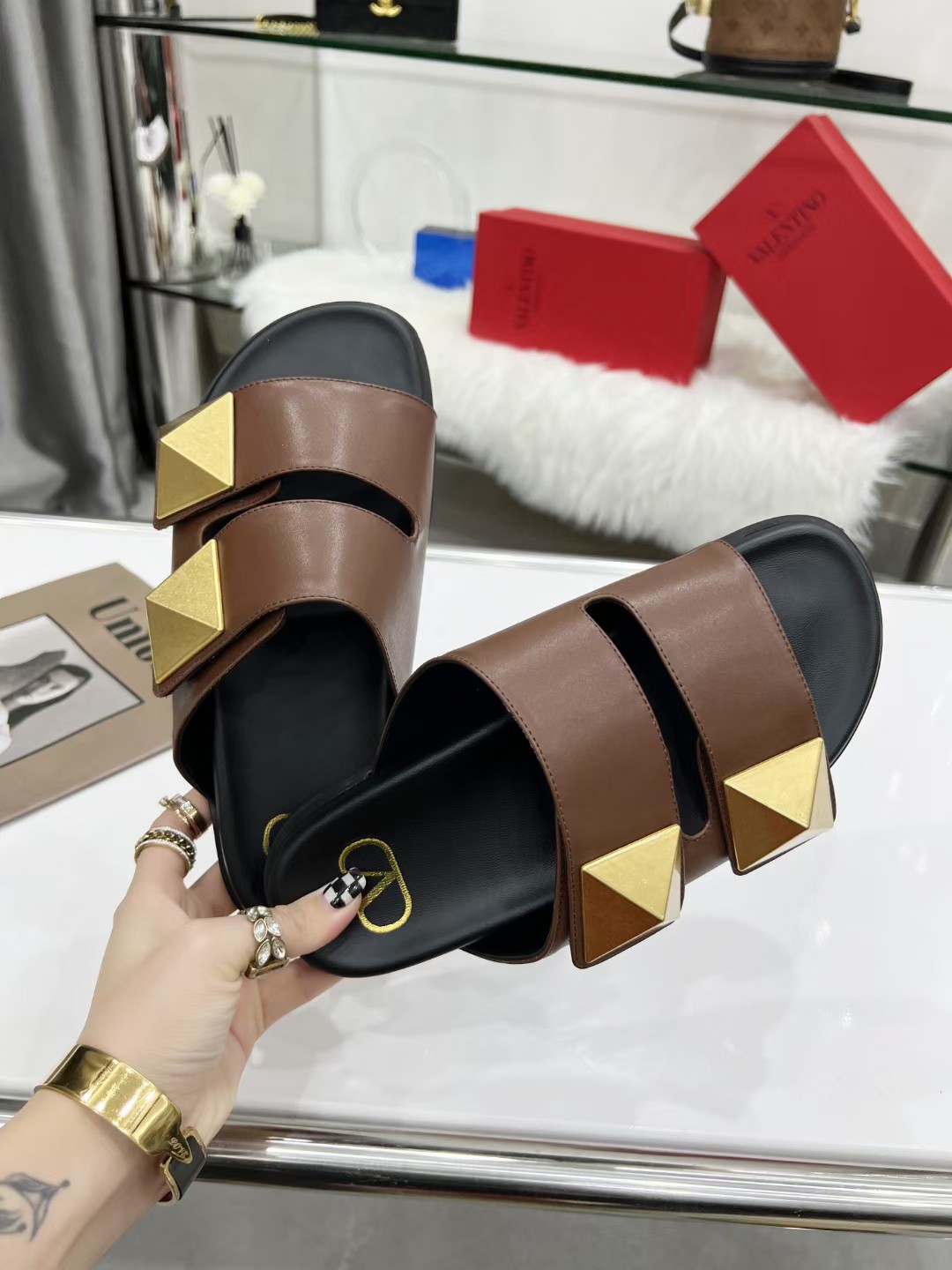 Va1e*ntin0 One Stud Sandals 90mm In Brown Calfskin Master Quality